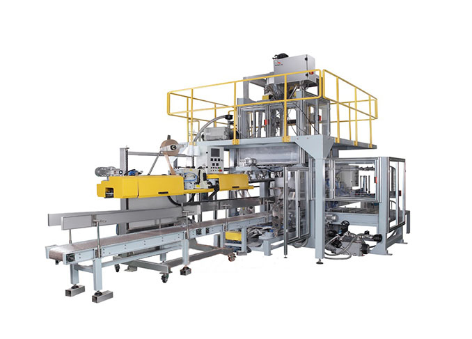 BG电子中国大陆智能针对化工、粮食、农化、食品等行业的大袋子粉末物料包装而设计的新型包装机机组,该机组具有自动称量、自动上袋、自动填充、自动送包、自动封口等功能。可与后道码垛机器人等设备实现联动,实现大规格包装、码垛无人化作业。