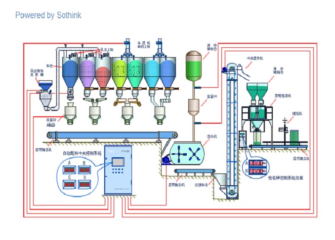 1、多物料:该系统按照规定的重量配比,自动完成2-10种物料的配料;