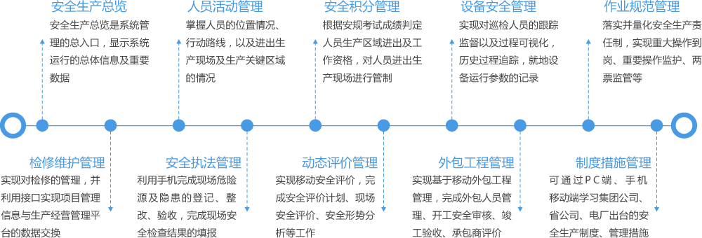 互联网+安全生产管控平台积极践行互联网与发电厂生产管理的深度融合,探索建立设备智能、多能协同、信息对称、检修运行开放的发电厂生产管理新模式,充分利用互联网手段,以电厂实际需求为导向,以企业班组和工作岗位为实体,以提高工作效率和工作质量为出发点,以促进安全、成本控制和提升企业效益为最终目的,实现发电厂生产管理由定性化向定量化转变。