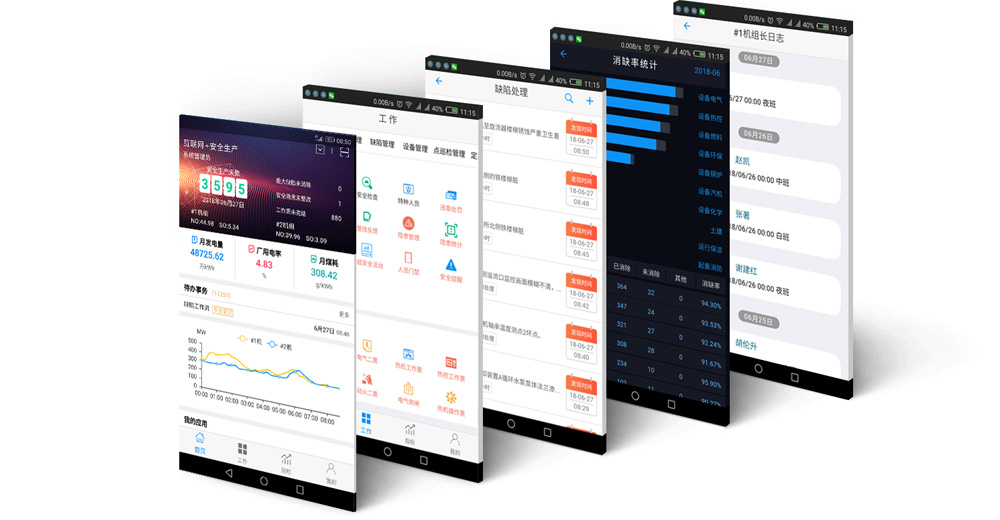 缩进互联网+安全生产管控平台集成生产MIS系统、SIS系统,在PC端和移动端实现设备、缺陷、两票、运行、点检、工单、安全、燃料、物资、计划、合同、经营等业务功能,通过WIFI、二维码、蓝牙、移动终端等设备联接生产区及办公区,构建全方位、全要素运营管控体系。