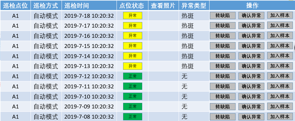 Ëõ½øÈÎÎñÖ´ÐÐÍêºó¿ÉÊÓ»¯²é¿´Ñ²¼ìÈÕÖ¾£¬ÈÕÖ¾¼Ç¼ÈÎÎñº½Ïß¡¢µ½´ïº½µãµÄÏêϸÐÅÏ¢ºÍÅÄÉãµÄͼÏñ£¬²¢Óò»Í¬ÑÕÉ«±íʾѲ¼ì¹ý³ÌÖеÄÒì³£ÎÊÌâ¡£