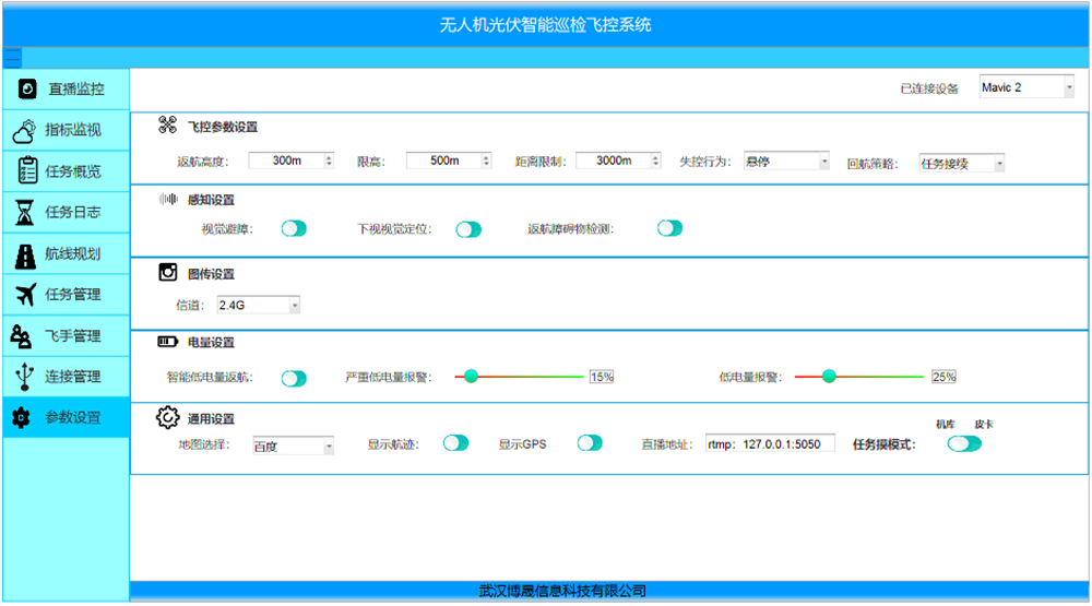 • Òì³£É豸¹ÜÀíÓëÊý¾Ý·ÖÎöËõ½øÑ²¼ìϵͳPC¶ËÖ§³Ö¶à¼ÜÎÞÈË»úÁ¬½Ó£¬¿Éʵʱ¼à¿ØÎÞÈË»ú·ÉÐÐ״̬¼°Ñ²¼ìÈÎÎñÖ´ÐÐÇé¿ö£¬²¢ÔÚÊʵ±Ê±ºòÊÖ¶¯½Ó¹ÜÎÞÈË»ú½øÐÐÊÖ¶¯Ñ²¼ì¡£Ñ²¼ìÏµÍ³ÒÆ¶¯APP¶Ë½«ÎÞÈË»úѲ¼ì»ÃæÍÆË͵½RTMPÍÆÁ÷·þÎñÆ÷£¬PC¶Ë·ÃÎÊÍÆÁ÷·þÎñÆ÷½øÐÐÀÁ÷£¬¿ÉÒÔʵÏÖÎÞÈË»úѲ¼ìÖ±²¥»ÃæµÄÏÔʾ£¬°üÀ¨¿É¼û¹â¡¢ÈȳÉÏñ¼°Ñ²¼ìСµØÍ¼¡£