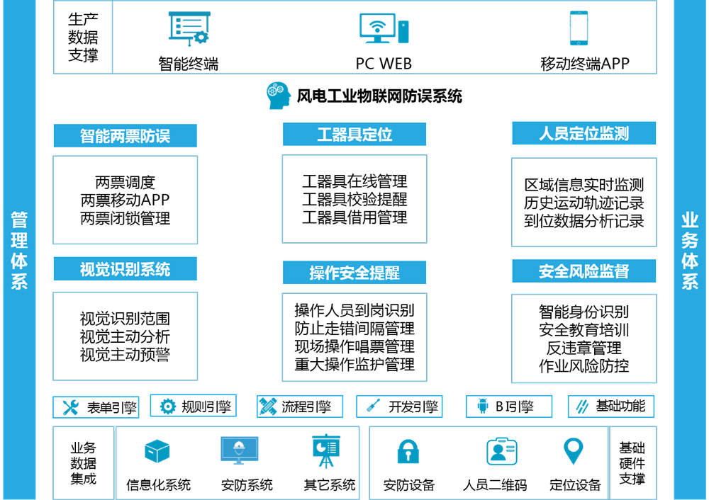 缩进鉴于风电生产设备距离分散、两票闭环效率低、人员安全监管难等痛点,基于工业物联网技术如移动APP技术、电子锁具、人员到位技术,全面覆盖两票执行、两票监管等环节,提升风电现场防误入非工作区域防控能力。