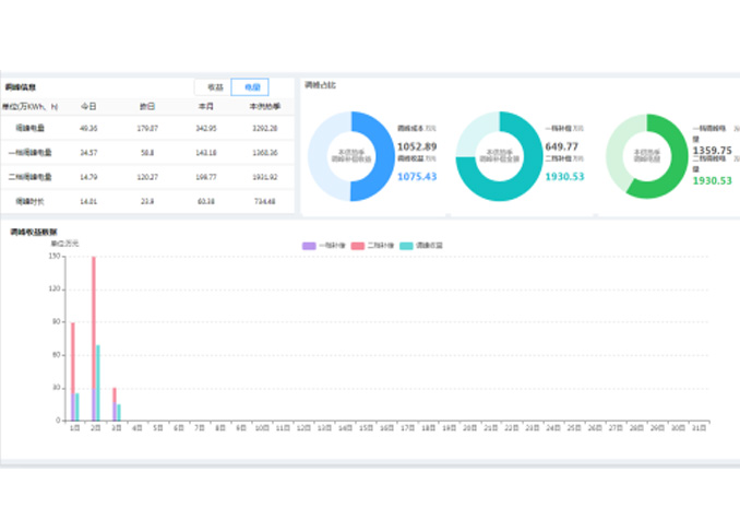 调峰收益报表:包括日报表、月报表、年报表及实时调峰数据报表,将调峰收益以报表及曲线的形式展示出来,避免了人工统计容易出错的问题。