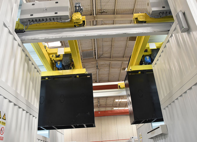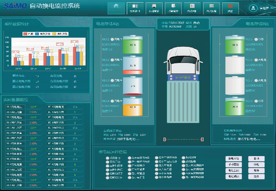 ͳÅäÖÃÁ½¸öèì¼Ü»úÆ÷ÈË£¬Ò»¸ö»úÆ÷ÈËץȡµç¶¯ÖØ¿¨ÉÏ¿Õµç³Ø°üËÍÈë³äµç룬ÁíÒ»¸öץȡ³äÂúµçµÄµç³Ø°ü·Åµ½µç¶¯ÖØ¿¨ÉÏ£¬Á½¸öèì¼Ü»úÆ÷ÈËÐͬ×÷Òµ£¬ÔËӪЧÂʸߣ¬»»µçËٶȿ죻